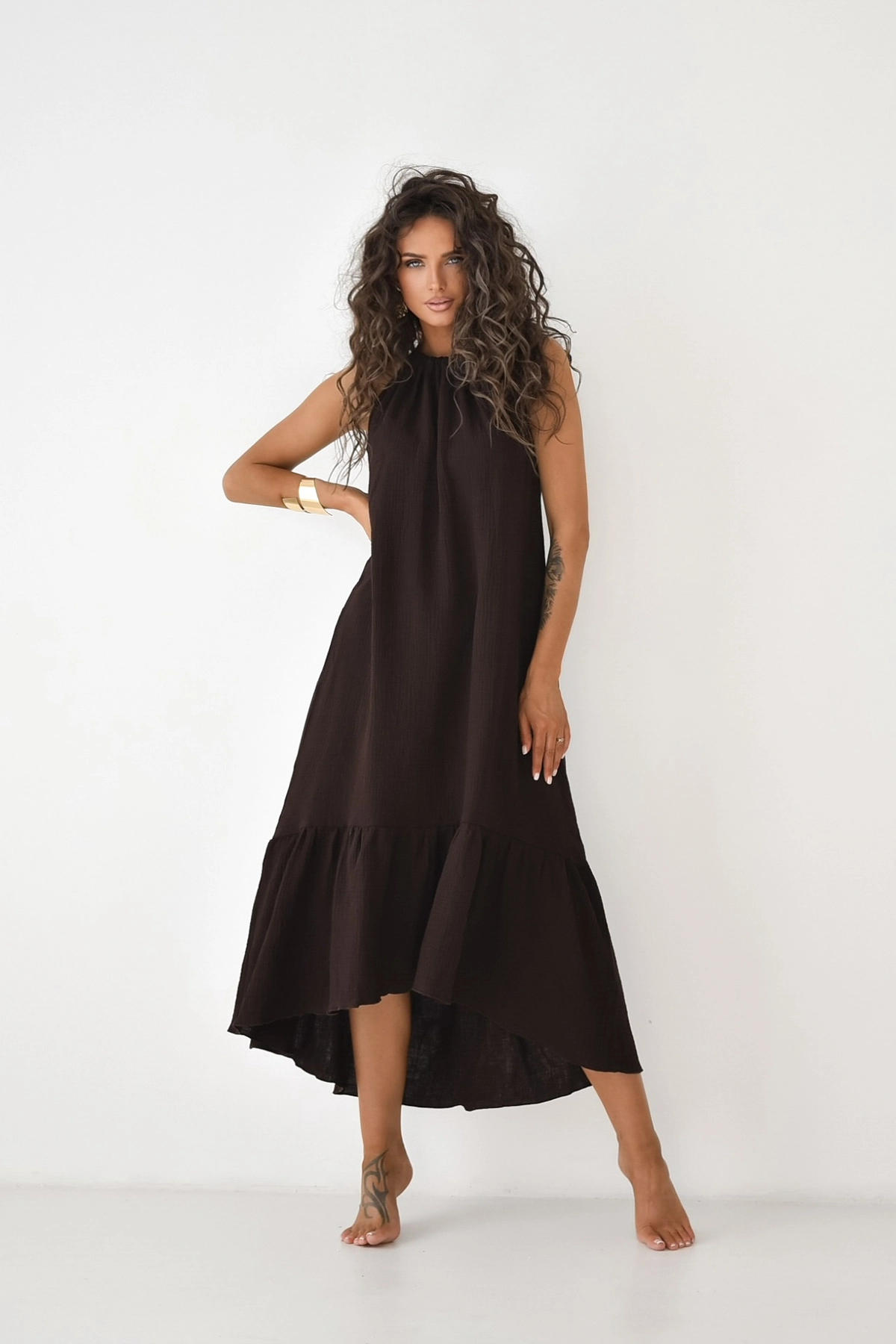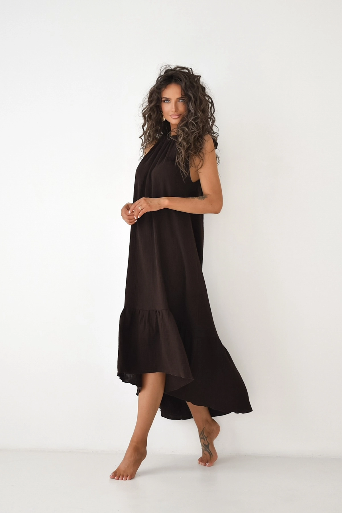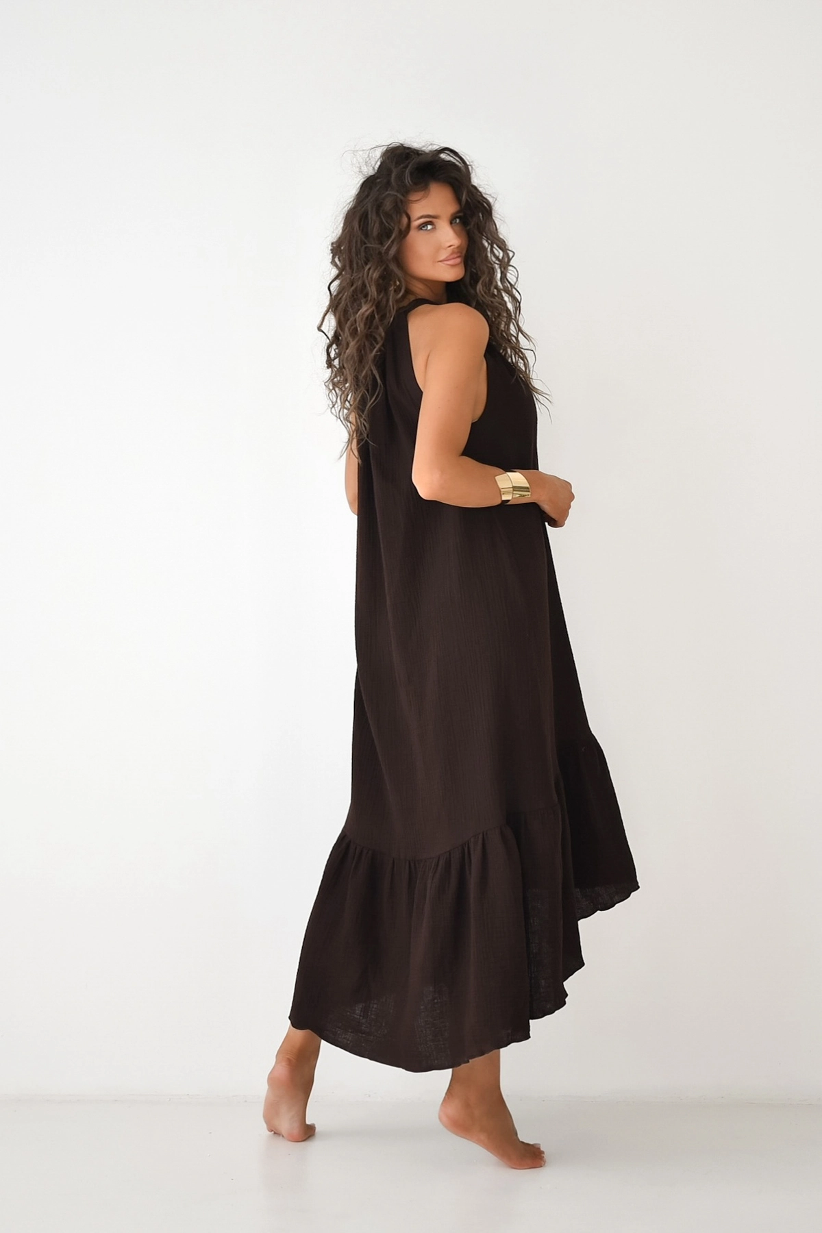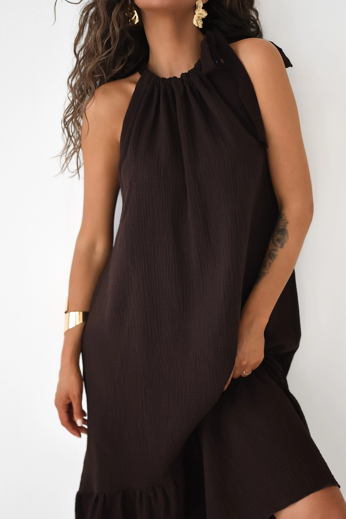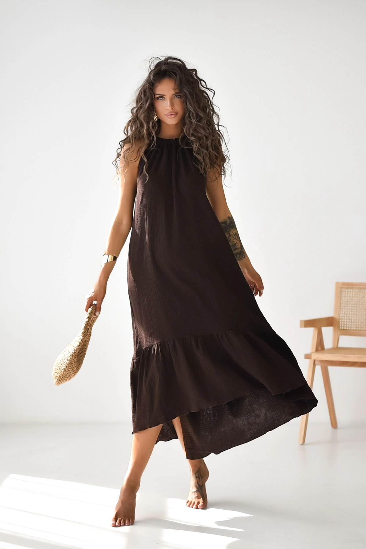 Bahia - bawełniana sukienka midi z muślinu czekoladowa
