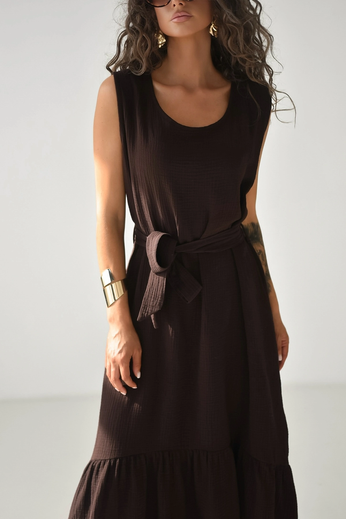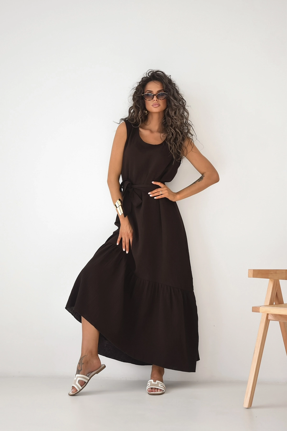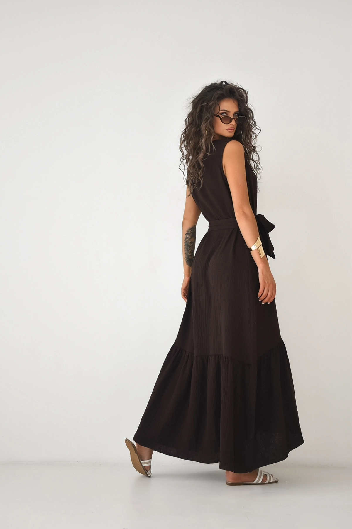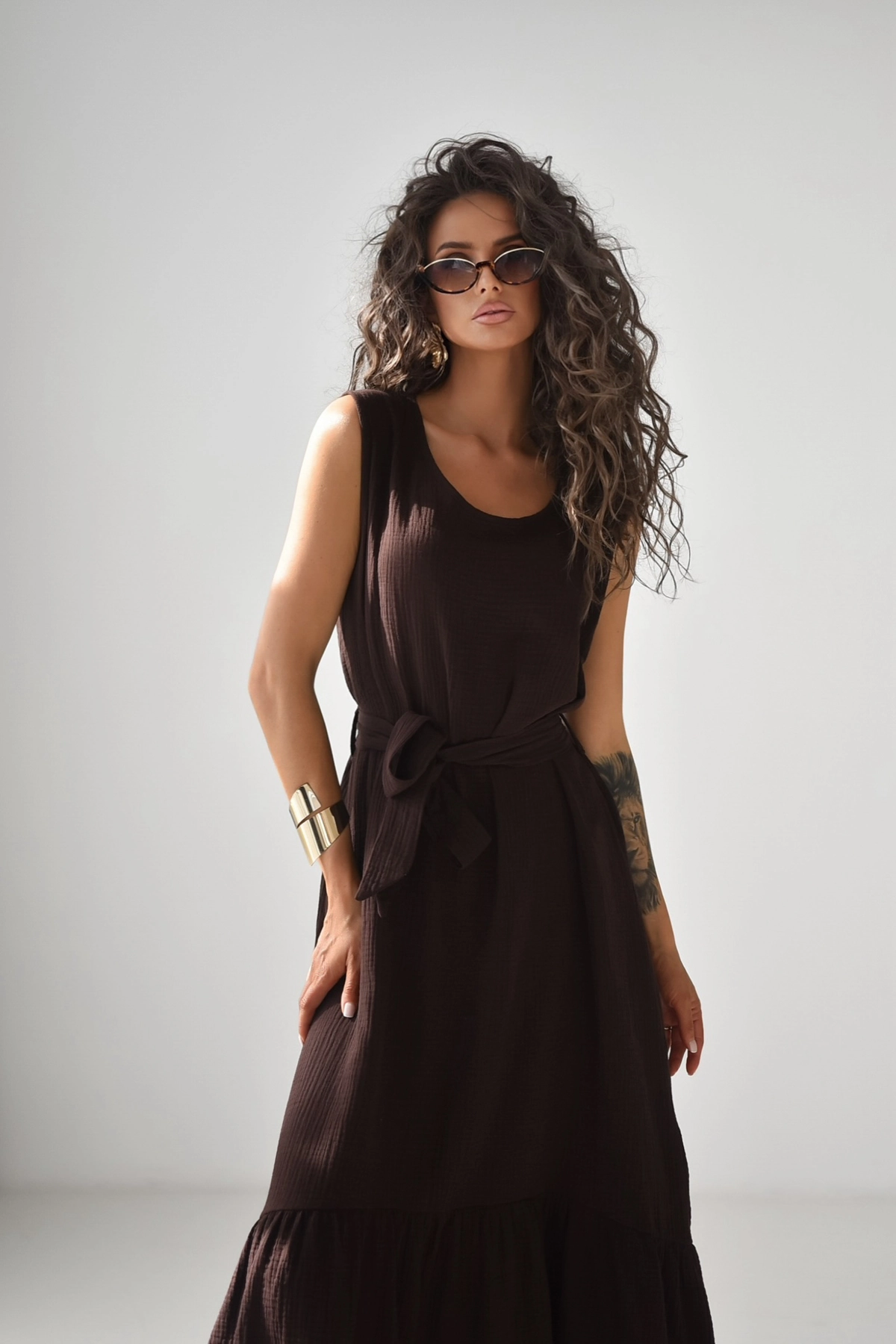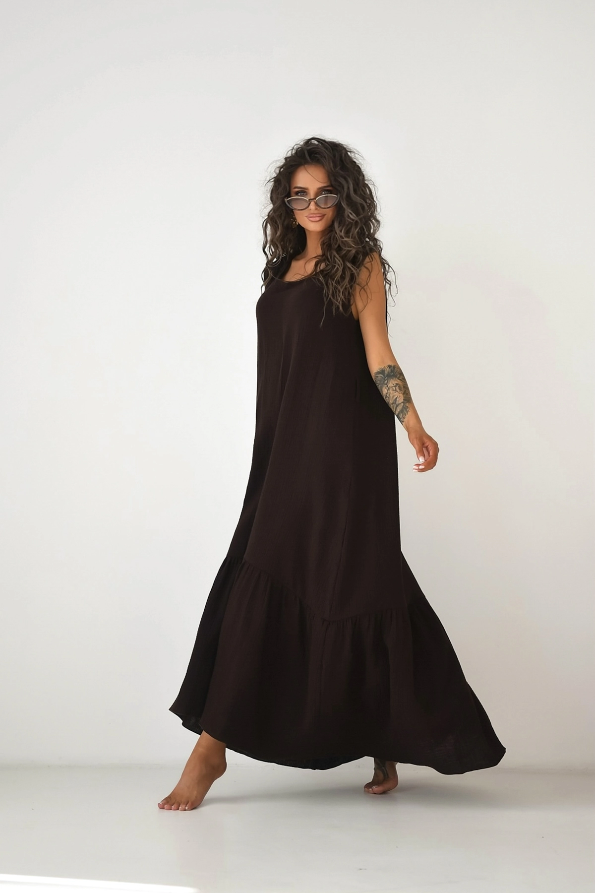Laguna - bawełniana sukienka maxi muślinowa czekoladowa