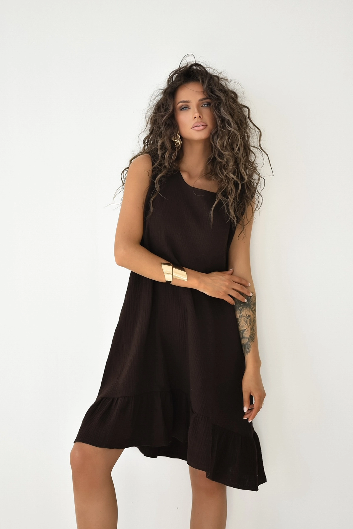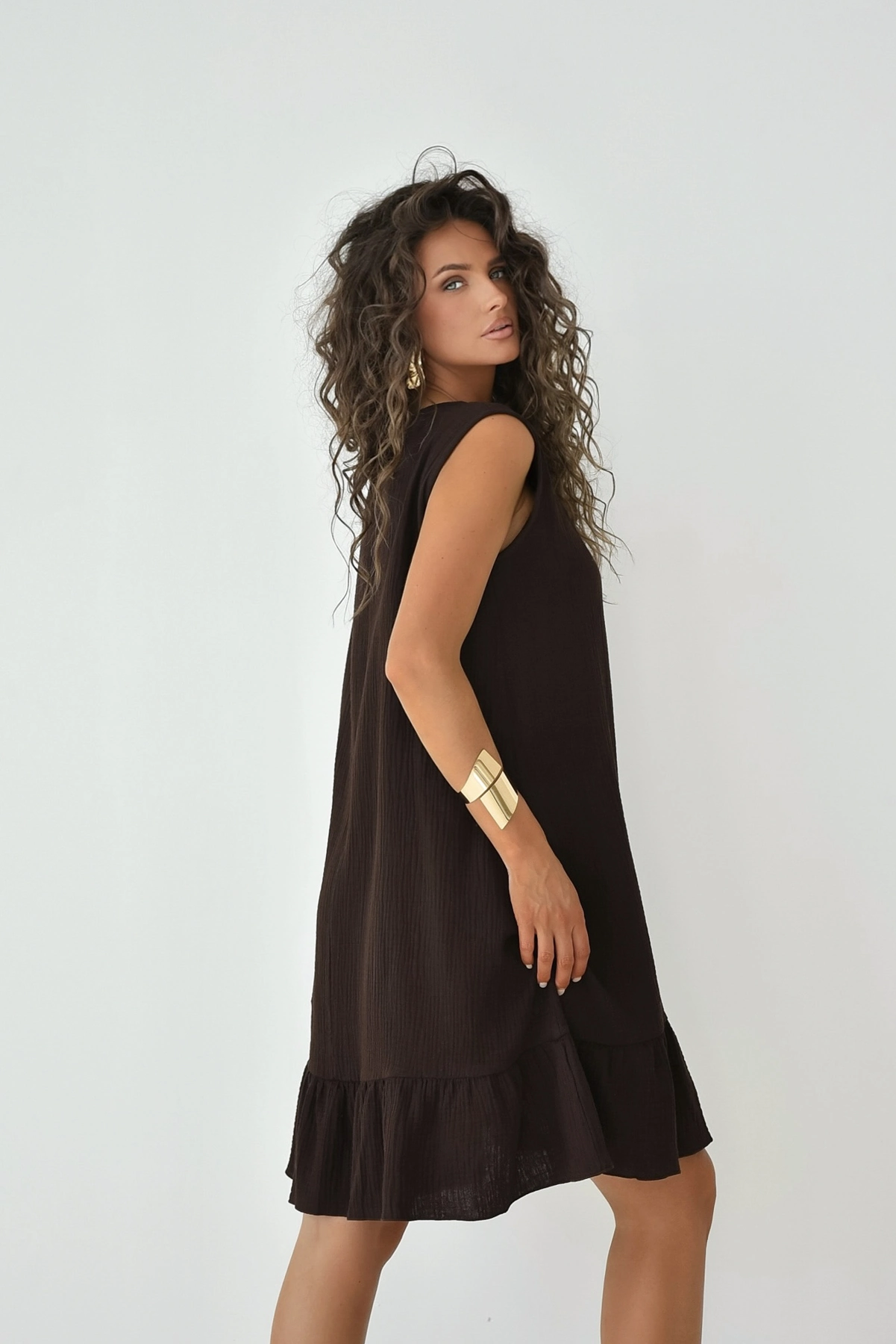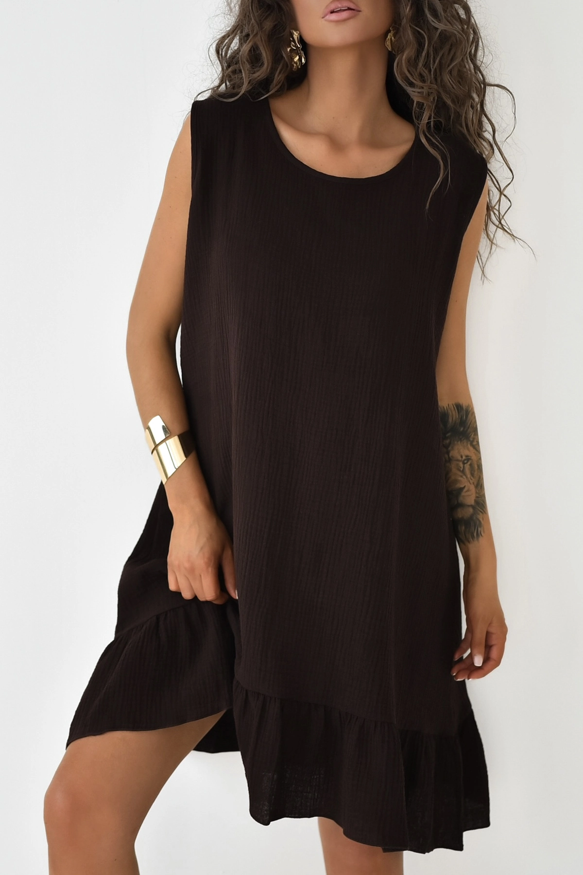 Punta - bawełniana mini sukienka oversize z muślinu czekoladowa